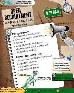 LEMBAGA PENGEMBANGAN PRESTASI AKADEMIK UIN SUSKA RIAU 2026 membuka kesempatan bagi kamu untuk bergabung dan berkontribusi dalam membangun LP2A yang lebih baik!
